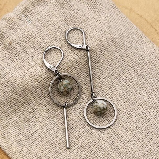 La boucle « Destructurée » est une pièce d'exception composée de plusieurs éléments de qualité. Elle inclut une perle en verre filé au chalumeau, soigneusement façonnée pour un éclat unique. La perle est fixée à une bélière, accompagnée d’une tige et d’une coupelle-anneau, le tout complété par un anneau en acier inoxydable. Ce montage apporte une note contemporaine et artistique à votre collection de bijoux. La collection « Cielo » séduit par son bleu doux et apaisant. Élégante et délicate, elle accompagne parfaitement vos tenues estivales en apportant une touche de fraîcheur, de finesse et de raffinement. Matériaux : - Apprêts en acier inoxydable couleur acier - Perles en verre filé au chalumeau