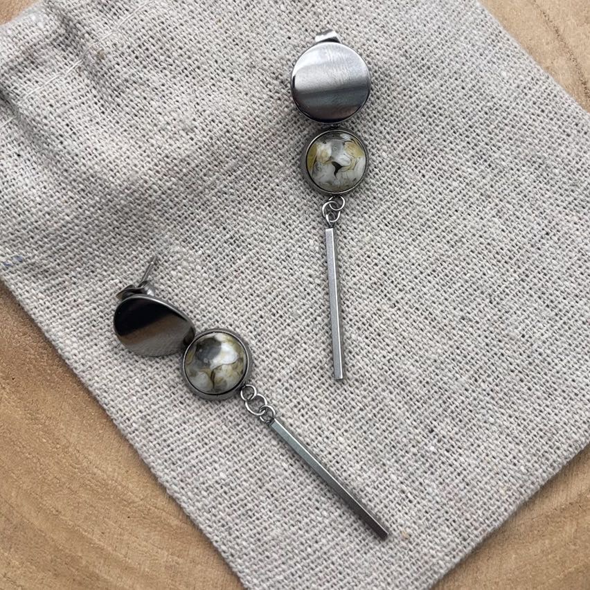 Les clous d’oreilles pendants « Cabochon » sont des boucles d’oreilles qui se portent aussi bien en journée qu’en soirée. Élégantes et raffinées, elles apportent une touche de féminité et de lumière à votre tenue, en toute occasion.