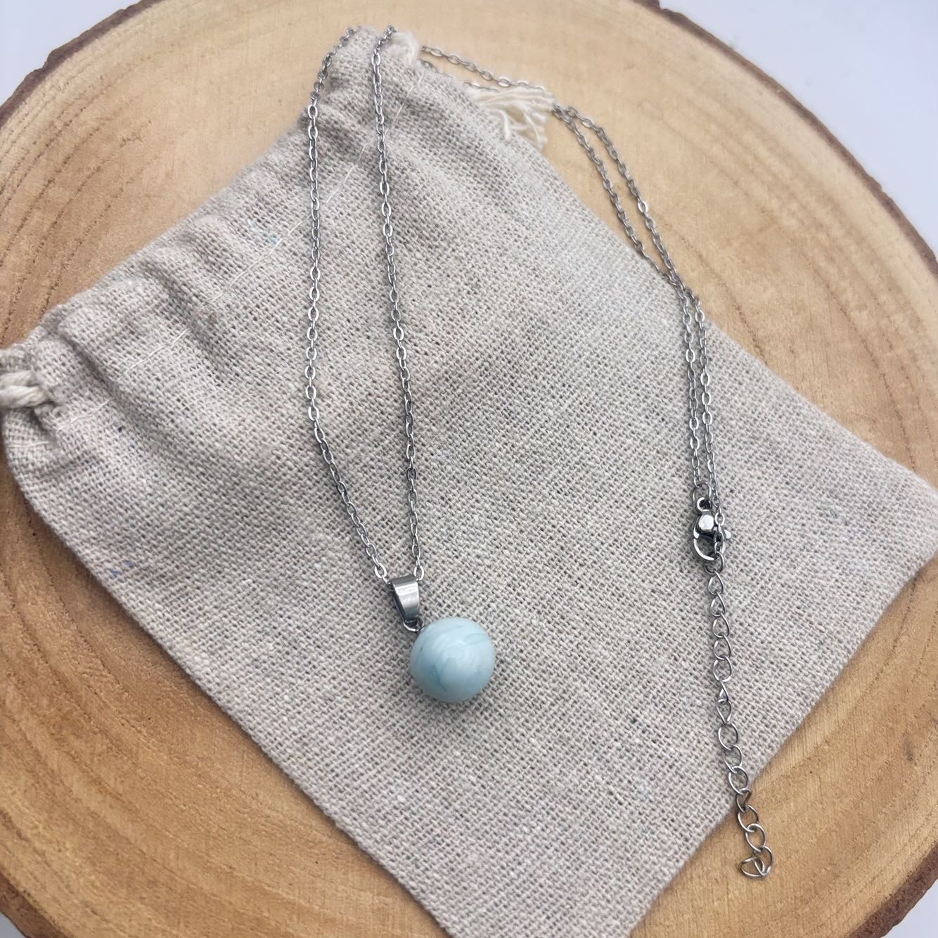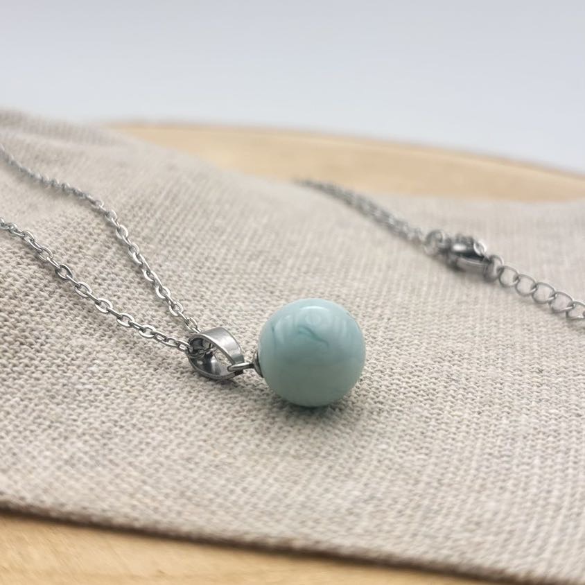 Le modèle collier « petite perle » est composé d’une perle de verre filé au chalumeau, d’une coupelle avec anneau et d’une chaîne de 45 cm en acier inoxydable. Ce choix de matériaux garantit une durabilité et une élégance. La collection « Cielo » séduit par son bleu doux et apaisant. Élégante et délicate, elle accompagne parfaitement vos tenues estivales en apportant une touche de fraîcheur, de finesse et de raffinement. Matériaux : - Apprêts en acier inoxydable couleur acier - Perles en verre filé au chalumeau