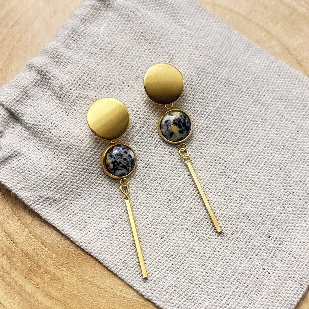 Clous d’oreilles pendants cabochons « Intense » Doré