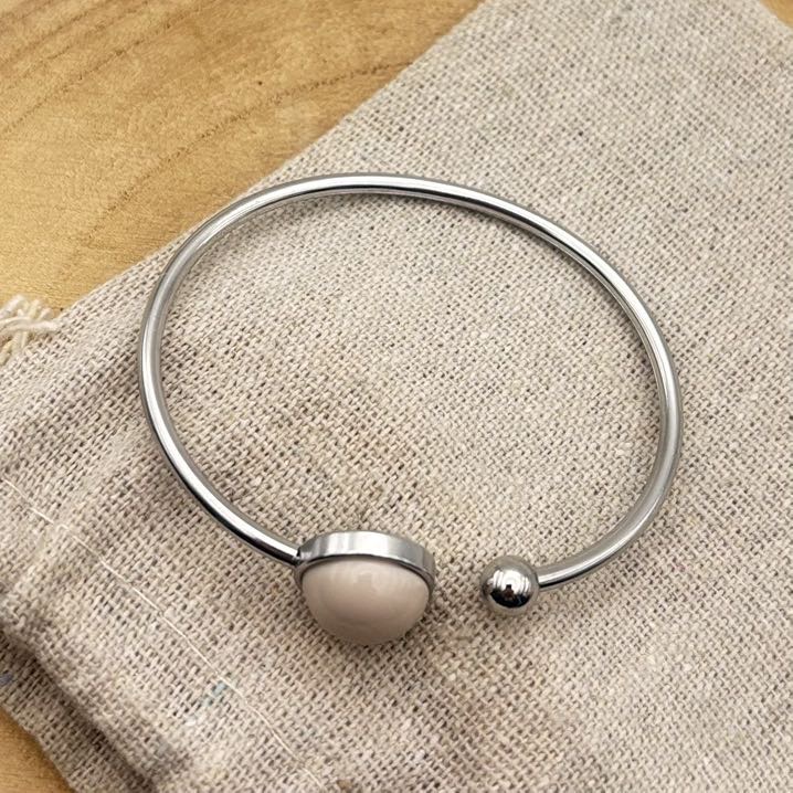 Bracelet jonc cabochon ajustable taille S/M « Ivoire »