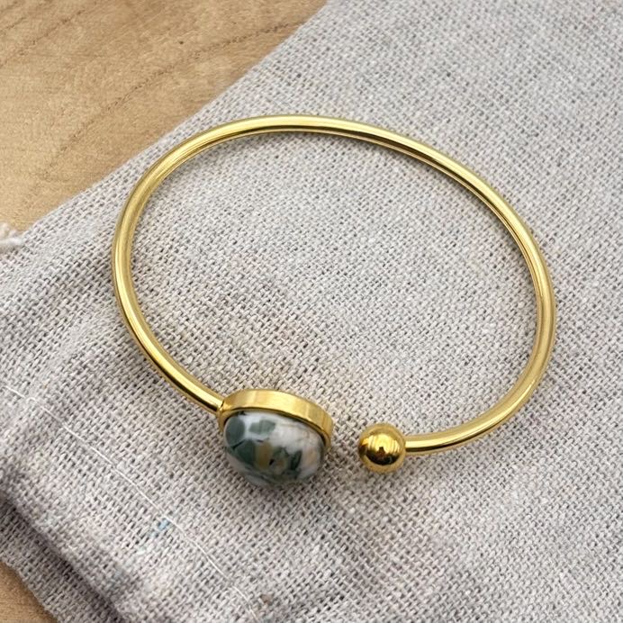 Bracelet jonc cabochon ajustable taille S/M « Kaki »