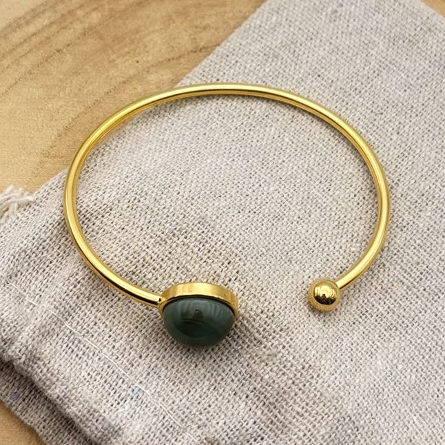 Bracelet jonc cabochon ajustable taille S/M « Kaki Uni »