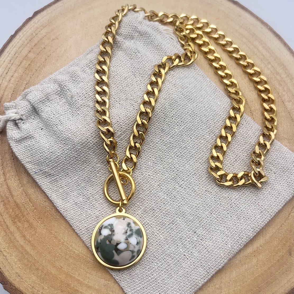 Collier cabochon « Kaki »