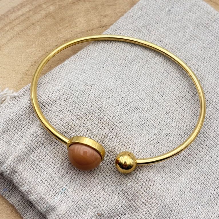 Bracelet jonc cabochon ajustable taille L « Nude Uni »