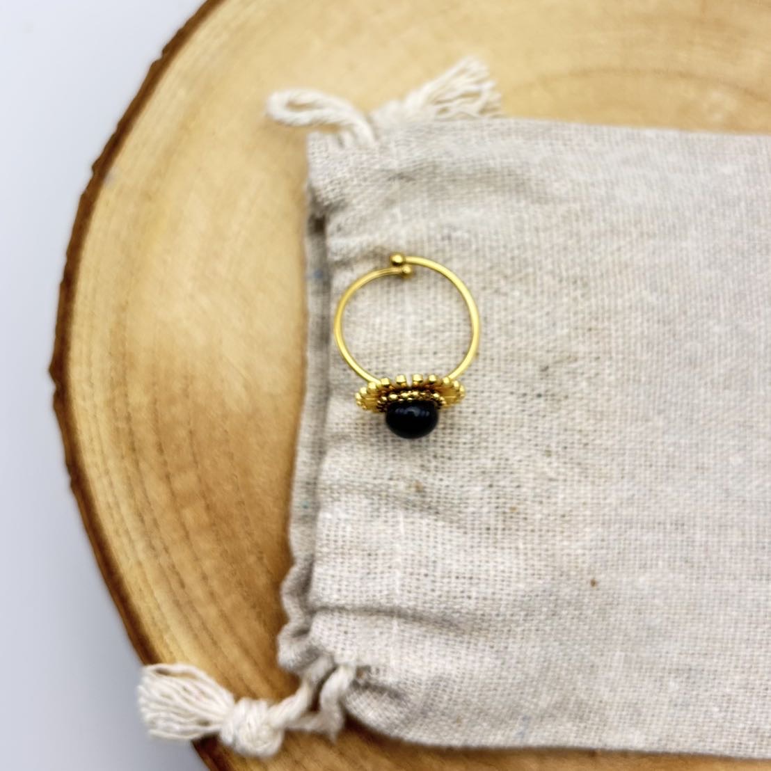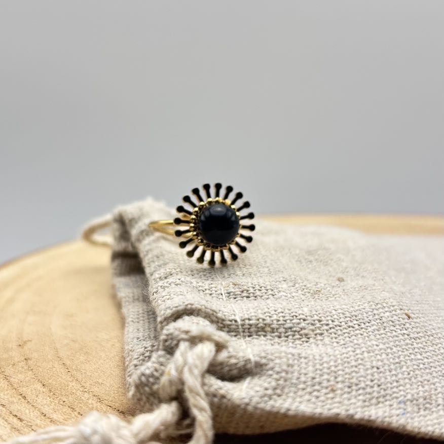 Bague fleur ajustable « Unis » Noir Doré